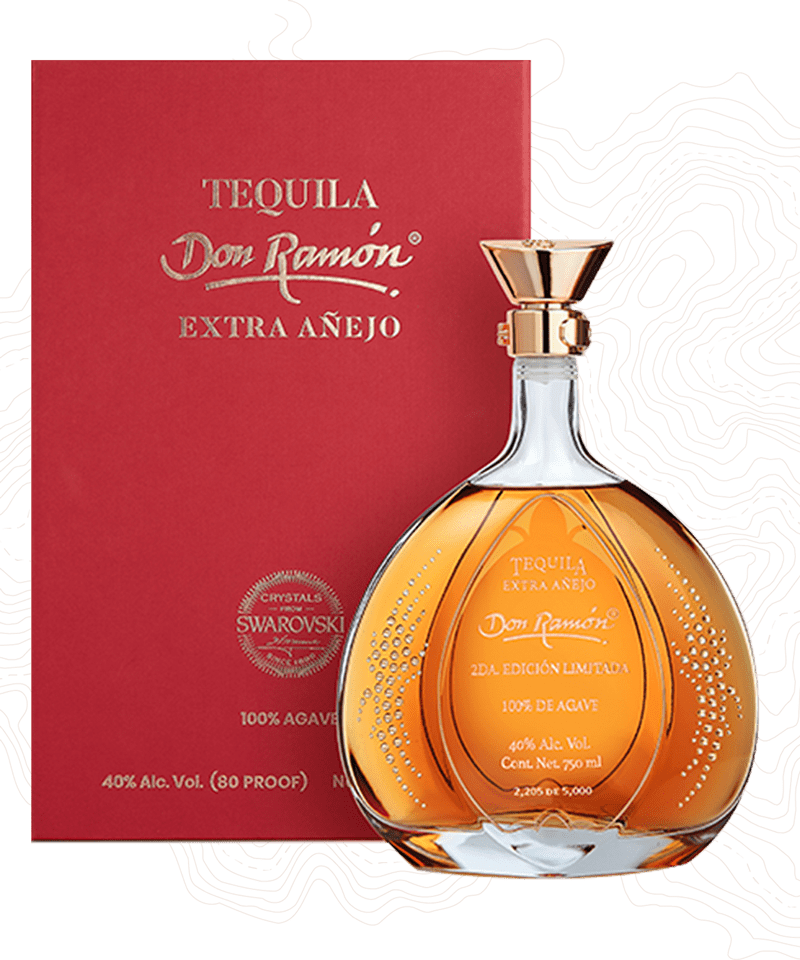 Tequila Don Ramón Limited Edition Añejo is double-distilled and aged in oak barrels for 12 months resulting in a smooth, bold taste and aromatic profile. Made from 100% Blue Agave from the highlands of Jalisco, Mexico, this complex amber spirit can be described as fresh and woody with elegant notes of dried fruit and cooked agave. A sip reveals minerality bound with the distinct definition of spices, including cinnamon, cloves, and cumin. Presented in a stunning bottle embellished with Swarovski® crystals, our offering is designed to both capture the gaze and delight the tastes of the world’s most discerning palates.